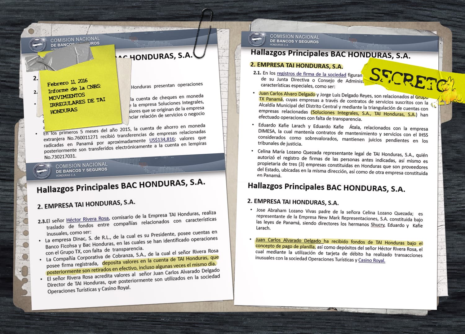 En 2014, el Congreso Nacional aprobó un fideicomiso entre el Instituto Hondureño de Seguridad Social - IHSS y el Banco de América Central – BAC Honduras, de Jacobo Atala, para la cobranza a empresas en mora con el IHSS y la sujeción de las empresas que no se encontraban afiliadas a dicho instituto. BAC contrató para esos fines a TAI Honduras, el destino final para los fondos provenientes de TX, siendo sus fondos retirados en efectivo hasta varias veces en un día.