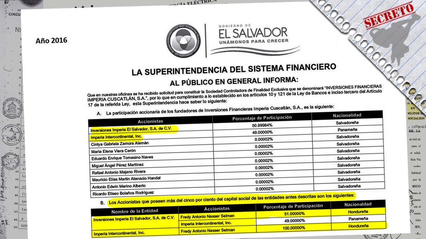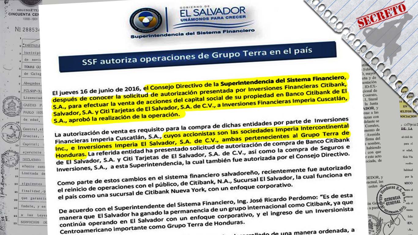 Con base en semejantes privilegios, a costa del Estado y del pueblo, Nasser pasó rápidamente de empresario energético a banquero internacional. En 2016, la Superintendencia del Sistema Financiero (SSF) de El Salvador, aprobó para Grupo Terra (a través de su empresa Inversiones Imperia El Salvador) la compra de acciones de CITIBANK S.A. y Seguros e Inversiones, S.A. (SISA). La operación incluyó la marca Banco Cuscatlán de El Salvador, S.A.; nombre de la entidad antes de determinarse en bancarrota y ser adquirida por la corporación estadounidense en 2008.