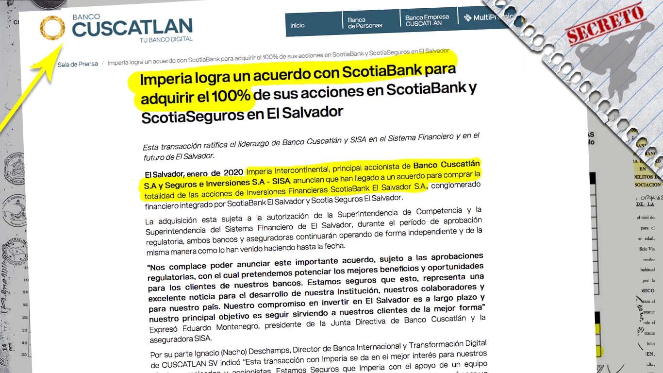 En enero de este año, Fredy Nasser compró las acciones del banco canadiense Scotiabank - El Salvador, y muy oportunamente "como una nueva medida de apoyo a sus clientes ante la actual coyuntura de cuarentena", Nasser fusionó rápidamente las dos instituciones financieras: Scotiabank y Cuscatlán. El nuevo binomio es parte del conglomerado financiero Imperia Intercontinental (del Grupo Terra), y a su vez el Banco Cuscatlán supera los 3,800 mil millones de dólares en activos y se consolida como la entidad financiera de mayor crecimiento en El Salvador, y la principal compañía de seguros en Centroamérica.