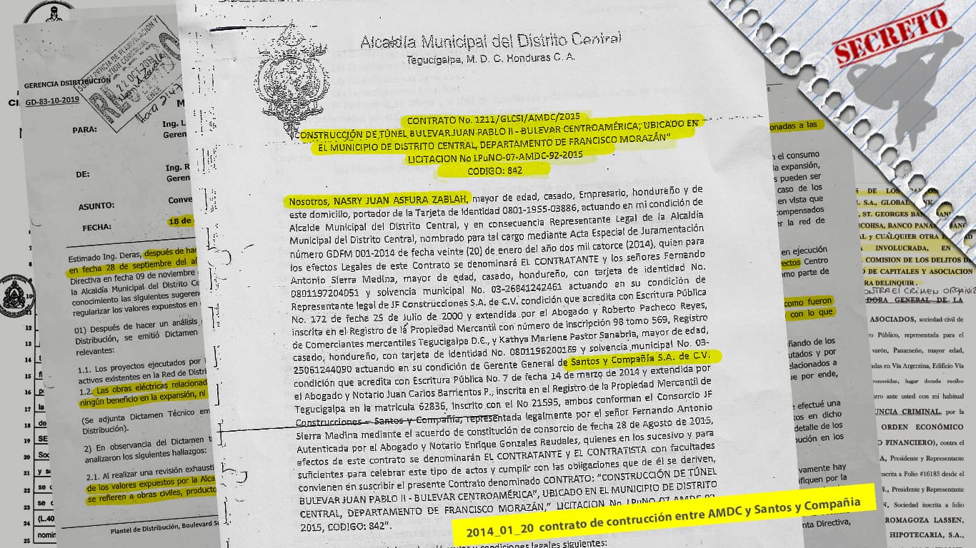El dolo no quedó en el trueque sin fundamento entre Tito y Jesús Mejía, buena parte de esa obra civil fue construida por Santos & Compañía, uno de los proveedores favoritos de la AMDC desde los años 90, empresa propiedad de Elvin Santos, señalado en 2019 por la Misión Contra la Corrupción y la Impunidad de Honduras - MACCIH-OEA en el Caso Pandora.